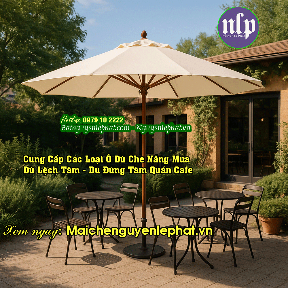| 4 | Dù lệch tâm tròn 3m 2 tầng tiêu chuẩn | 3.100.000 | Khung sắt sơn tĩnh điện chống gỉ, vải phủ PU chống tia UV, được ưa chuộng cho quán cà phê nhỏ |